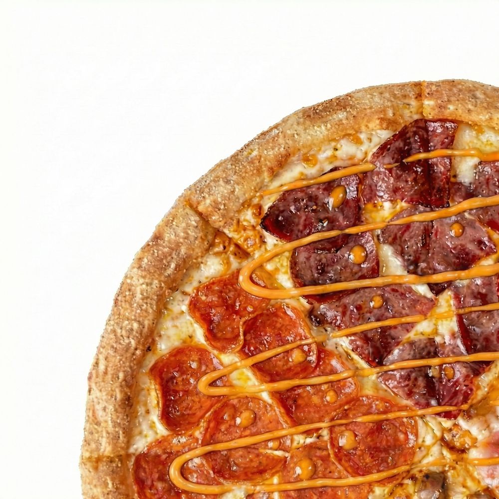 Томатный соус, сервелат, ветчина, бекон, пепперони, соус 1000 островов