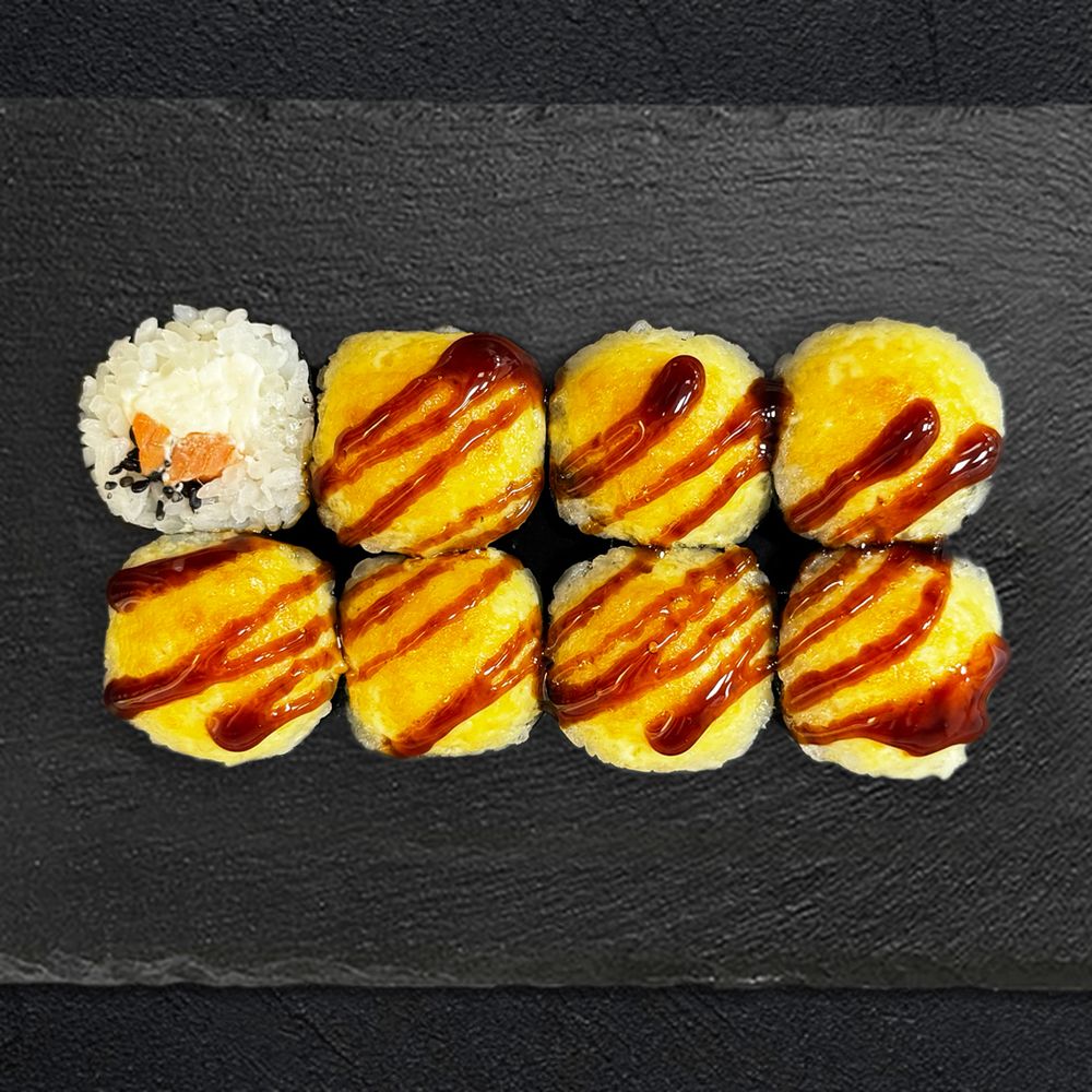 Состав: Рис, Нори, Лосось, Сыр сливочный, Кунжут, Замес чеддер, Соус унаги